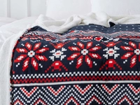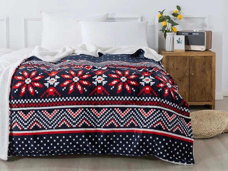 Modrá beránková deka 200x220 se vzorem pro zimní i sváteční období