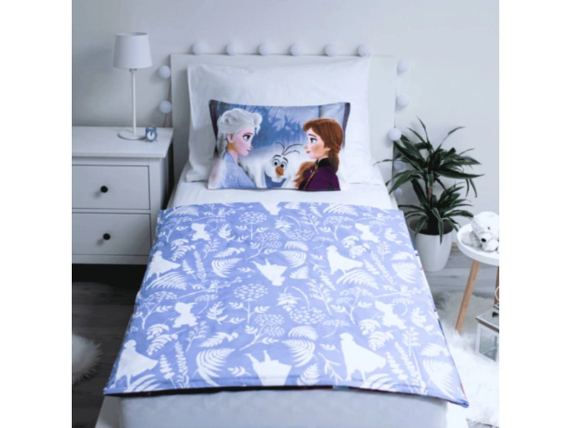 Krásné pohádkové postavičky Anna a Elsa přistanou každému pokojíčku a potěší nejednu malou slečnu. Dopřejte jim toto povlečení do postýlky Ledové Království, které rozveselí každý den. Disney povlečení pro holku s bílo modrou spodní stranou povlaku na peřinku je vyrobeno z příjemného materiálu 100% bavlny, jež je vzdušná, dobře saje pot a barvená je s ohledem na citlivou dětskou pokožku. Oceníte povlak na polštář s hotelovou kapsou a povlak na peřinu se zapínáním na zip. Spánek jako na obláčku si zaslouží každá malá princezna.