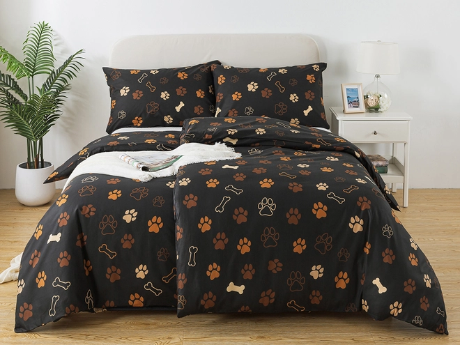 Bavlněné Renforcé povlečení TLAPIČKY - černé