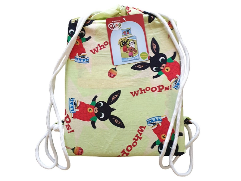 Povlečení má navíc i batůžek, v kterém je zabalené. Vak dobře poslouží například na výlety, stačí zatáhnout šňůrky a poklady jsou v bezpečí.