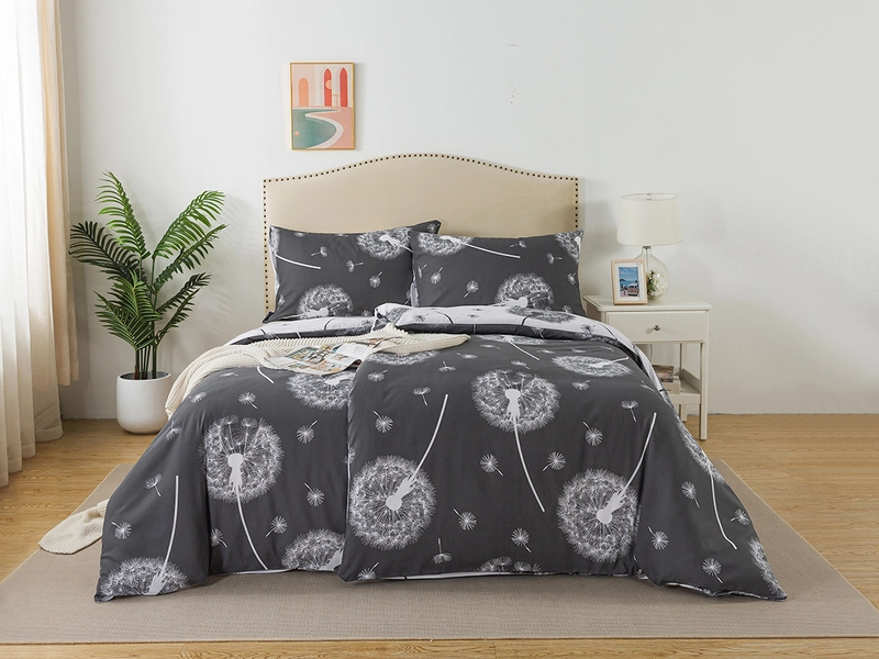 Saténové povlečení PAMPELIŠKY DUO - šedé/bílé