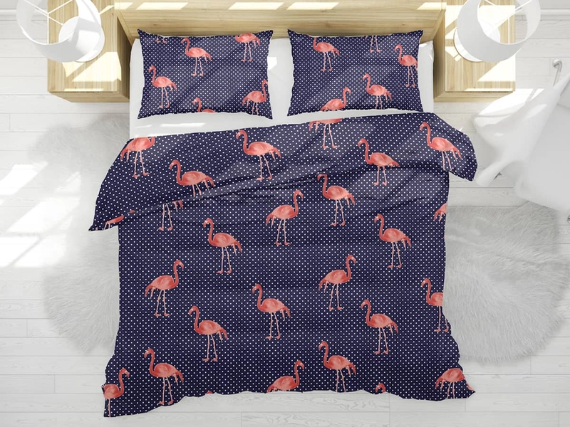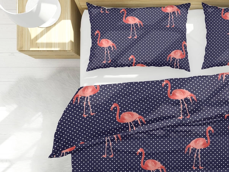 Oblíbený vzor růžových plameňáků nese mikrosaténové povlečení FLAMINGO 2. V kombinaci s jemnými puntíky na tmavě modrém pozadí evokuje letní bezstarostnou atmosféru a hodí se do dětských pokojů, ale nepochybně i do trendy ložnic, které jdou s dobou. Je vyrobeno z hebkého materiálu, jehož vlákna jsou jemná, rychle schnou a barvy odolávají i častému praní. Navíc se nemusí žehlit a tak šetří váš čas.