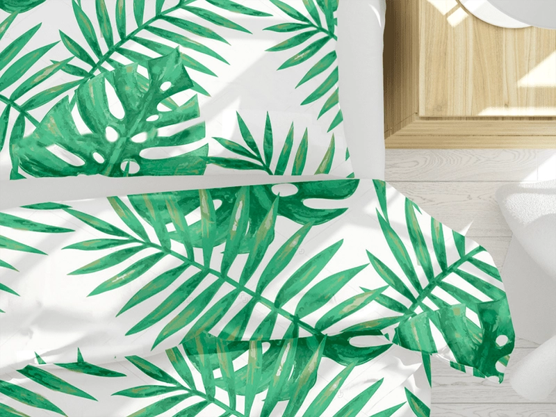 Mikrosaténové povlečení TROPICA vnese svěží exotickou náladu do každého interiéru. Motiv krásně doladí tmavě i světle laděný styl místnosti a bílý podklad ji opticky zvětší.  Přírodní tóny zelené směle doplňuje extrémně hebký mikrosatén, jenž nabídne hned několik pozitivních vlastností, jakou jsou například rychlé schnutí po vyprání, dobrá absorpce vlhkosti a odolnost barev.