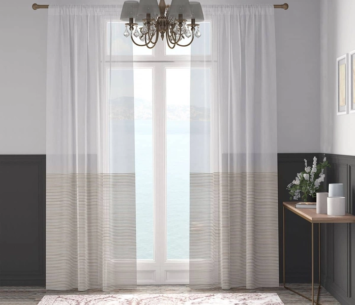 Moderní a zároveň praktická záclona ARTEMIS se hodí do každé místnosti. Je ušita z hedvábně jemného tylu, který je v dolní části ozdoben jemnými vodorovnými proužky ze zesílené příze. Jednoduše tak zakryjete nevzhledné radiátory u oken. Část bez vzoru je mléčně průhledná a dodá tak místnosti dostatek denního světla. Krásné záclony si zaslouží i váš interiér. Stačí si vybrat z pestré nabídky barev a rozměrů.
