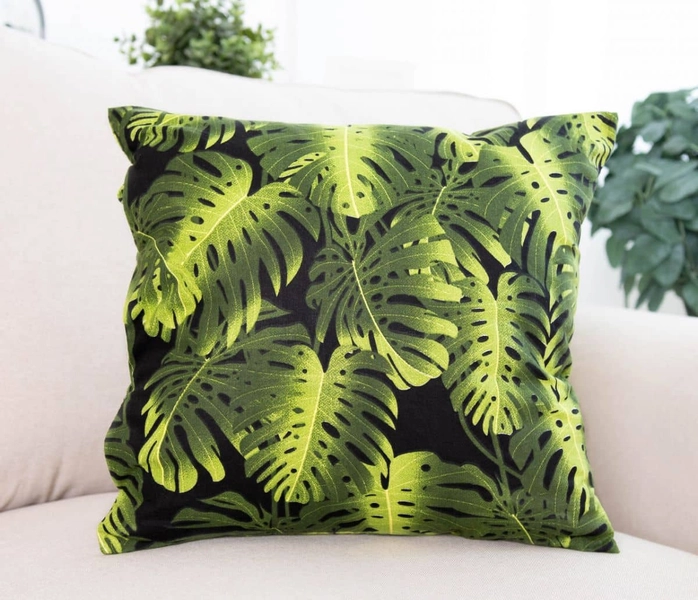 Stručný název bavlněného povlaku JULE nabízí lákavou kombinaci tmavého černého podkladu s rafinovaným stínováním zelených barev tropických listů. Dodejte vašemu bydlení šmrnc a kombinujte si podle nálady různé povlaky z naší nabídky. Podrobný popis: Materiál 100% bavlna - hladká plátnová vazba se stejným potiskem z obou stran. Barva je černá a odstíny zelené. Zapínání na 2x klasický plastový knoflík. Knoflíková lišta má otvor asi 27 cm. Po zapnutí jsou knoflíky překryté materiálem. Šití je klasické, kraje začištěny overlockem. Vhodné pro obývací pokoj, křeslo, ložnice, předsíň atd. Údržba: Povlaky doporučujeme prát naruby a zapnuté při maximální prací teplotě 40 °C