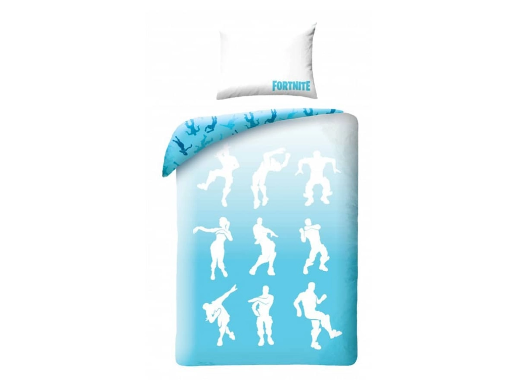 Dětské povlečení 140x200 s motivem online hry FORTNITE potěší nejednoho malého hráče a gradující odstíny z bílé až do modré - tyrkysové barvy hravě doladí každý dětský pokoj. Ke kvalitnímu spánku přispěje na dotek jemný, vzdušný materiál 100% bavlny a odolné barvy vhodné pro dětskou pokožku.