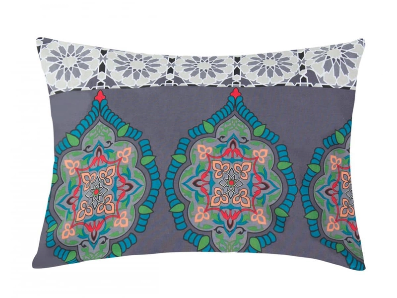 Povlak na polštář PADMA s jedinečnou skladbou barevných vzorů na šedém podkladu bude šperkem ve vaši ložnici. Vyroben je z měkké a prodyšné 100% bavlny a získá si vás díky vysoké snášenlivosti vůči praní a sušení. Každý povlak je unikátní a nese na sebe jinou část vzoru.