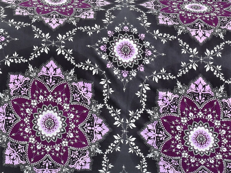 Prodloužené saténové povlečení s půvabným vzorem mandal na tmavém podkladu. Povlečení z bavlněného saténu má hebký povrch, který nestudí a zároveň absorbuje vlhkost do 20% své hmotnosti. Díky vysoké gramáži a úpravě materiálu je odolné vůči odření či trhání a není nutno jej žehlit.