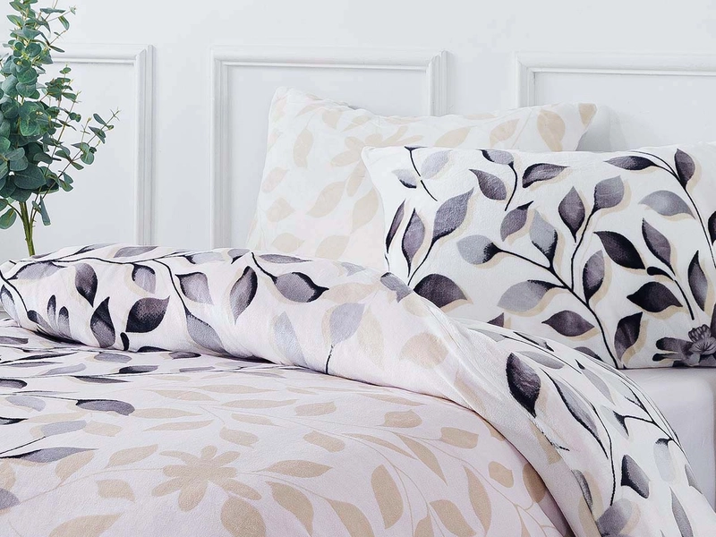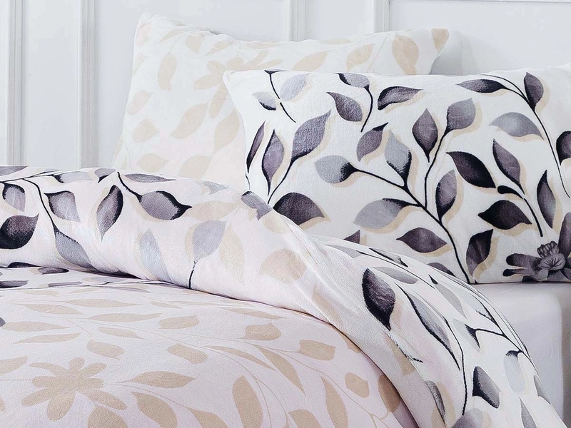 Mikroplyšové povlečení a vzor efektně stínovaných listů v šedé a béžové barvě krásně vyniká na světlém podkladu a s přehledem navodí příjemnou atmosféru v každé ložnici. Tvoří jej mimořádně jemné vlákno s krátkými chloupky, které má výjimečnou schopnost vytvářet v posteli útulno a teplo, jež oceníte za chladných zimních nocí. Mikroplyšové povlečení potěší také nenáročnou údržbou a stálostí barev i materiálu.