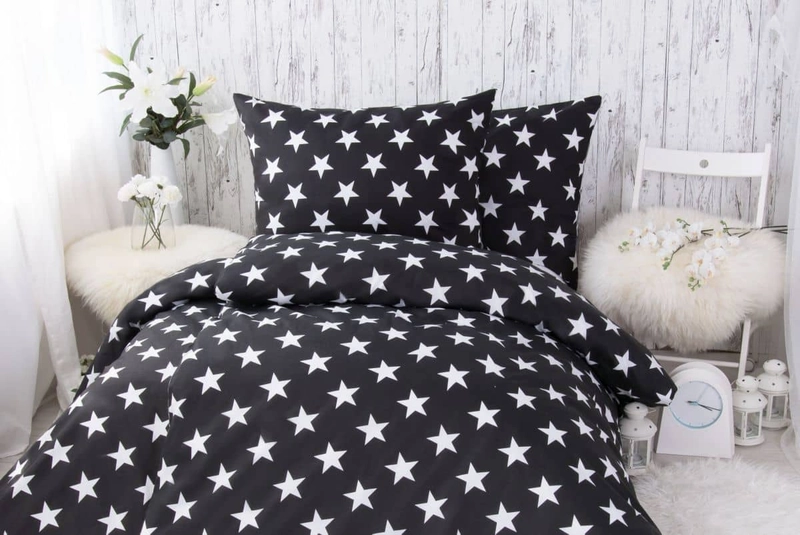 Hvězdičkové povlečení vám nabídne kladné vlastnosti bavlny i umělých vláken. Polybavlna je jemná na dotek, dobře propouští vzduch, rychle schne a nemusí se žehlit.