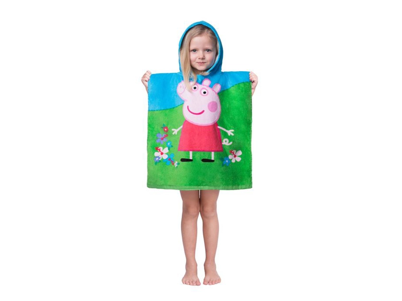 Hebké dětské pončo s motivem roztomilého prasátka Peppy si vaše dítě určitě oblíbí. Pončo je vyrobené z příjemného materiálu 100% bavlny s dobrou savostí, který je citlivý k dětské pokožce.