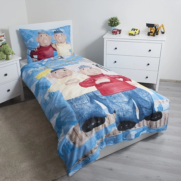 A je to! Kdo by si nepamatoval příběh dvou nešiků Pata a Mata, kteří se snaží rozřešit nejrůznější problémy a nikdy neskládají ruce do klína. Jejich vtipná řešení baví dětské obecenstvo už celých 40 let. A tak si povlečení s Patem a Matem můžete schovat třeba i pro další generaci. Povlečení je vyrobeno z jemné bavlny, která je vhodná pro dětskou pokožku, dobře saje vlhkost a je maximálně prodyšná.