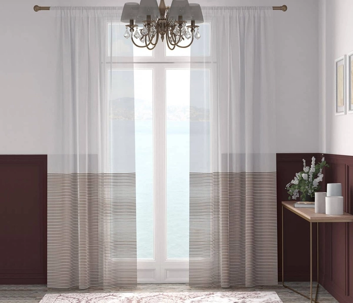 Moderní a zároveň praktická záclona ARTEMIS se hodí do každé místnosti. Je ušita z hedvábně jemného tylu, který je v dolní části ozdoben jemnými vodorovnými proužky ze zesílené příze. Jednoduše tak zakryjete nevzhledné radiátory u oken. Část bez vzoru je mléčně průhledná a dodá tak místnosti dostatek denního světla. Krásné záclony si zaslouží i váš interiér. Stačí si vybrat z pestré nabídky barev a rozměrů.