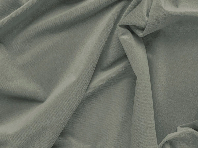 • Barva je světle šedá s lehce zemitým nádechem. Lícová strana je sametová a rubová hladká ve stejné barevnosti. Jednobarevný Velvet – samet z kvalitních umělých vláken.