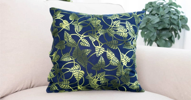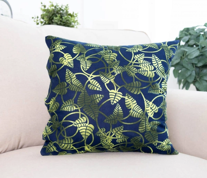 Stručný název bavlněného povlaku NOE nabízí lákavou kombinaci tmavě modrého podkladu s rafinovaným stínováním zelených barev se vzorem lístků. Dodejte vašemu bydlení šmrnc a kombinujte si podle nálady různé povlakyny polštáře z naší nabídky .