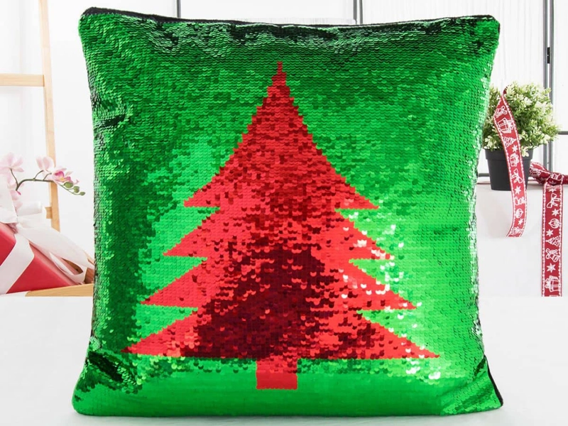 Flitrový povlak s motivem stromečku bude hravým doplňkem vašeho domova.