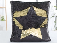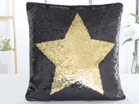 Díky rafinovaně našitým flitrům na něm najdete dva měnící se designy. Na přední straně zapůsobí zlatá hvězda na černém podkladu a pouhým přejetím ruky po povrchu naopak černá hvězda na zlatém pozadí. Zadní stranu povlaku na polštář tvoří jednobarevný mikroplyš s krátkým chloupkem jemným jako samet.