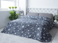 Dokonale zakryje neustlanou postel po ranním vstávání a můžete jej také použít jako další přikrývku, která vás v noci zahřeje. Neutrální šedá v podkladu dá krásně vyniknout bílému vzoru nepravidelných hvězd, které zobrazují noční oblohu a navodí tak příjemnou atmosféru v každé ložnici. Povrch přehozu je vyroben ze 100% bavlny a je vyplněn dutým vláknem. Rozhodně se vyplatí mít jej v ložnici.