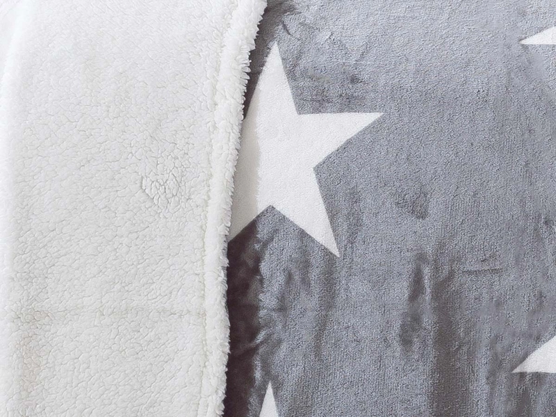 Měkoučká mikroplyšová deka LÝDIE s beránkem v šedé barvě zdobené hvězdami stylově ozdobí každou místnost a získá si vás hedvábnou jemností. Užijete si ji při odpočinku s šálkem horkého čaje, lenošení u televizní obrazovky, zejména v zimním období. Je vhodným dárkem pro RODINU, přátele či věčné zimomřivce. Deku lze také povléknout a využít jako přikrývku na spaní. Pro dokonalý efekt nezaponeňte ani na povlaky na polštářky. a další mikroplyš.