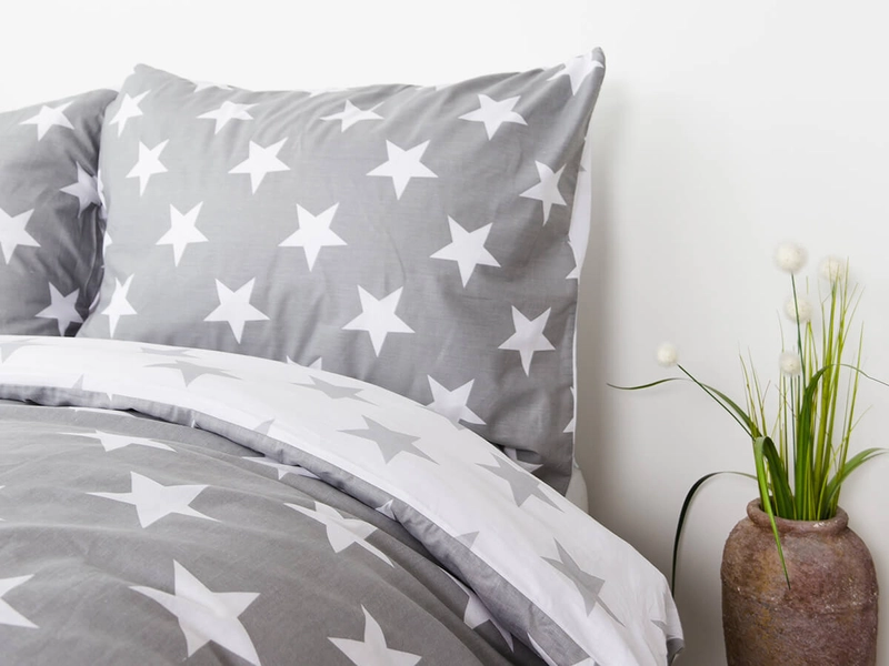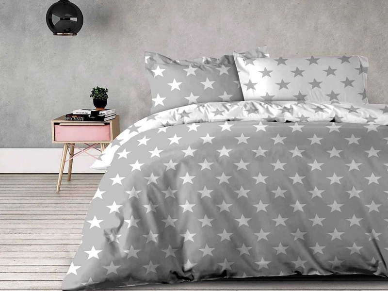 Hvězdičkové francouzské povlečení LÝDIE v provedení jemné bavlny zaujme taky s DUO barevným provedením. Bílý nebo šedý podklad si lehce změníte podle nálady pouhým otočením. Na dotek příjemný materiál je prodyšný, vyrovnává teplotní rozdíly a dobře absorbuje vlhkost.