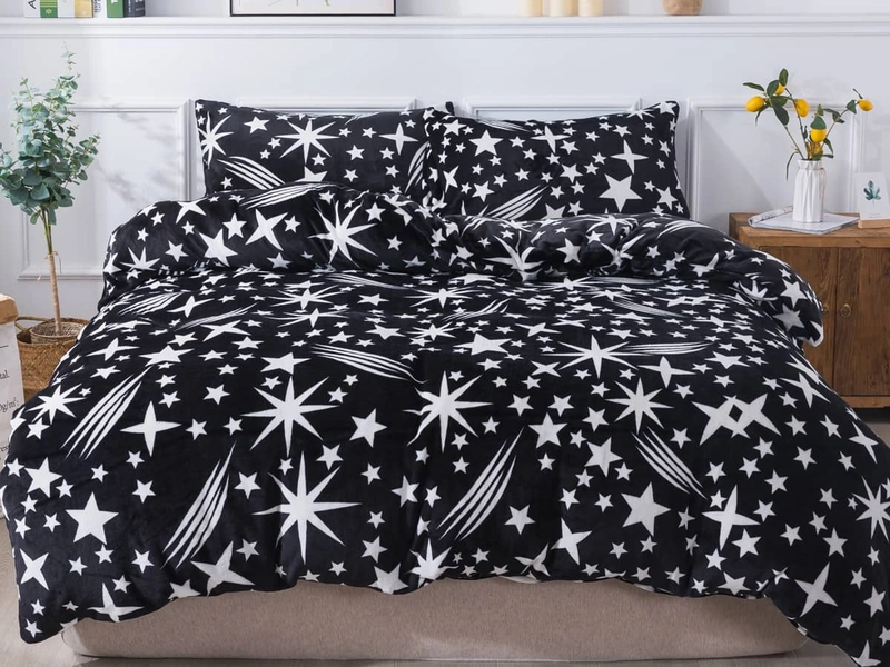 Hledáte ložní prádlo nejen na zimu? Pak jste tady správně! Mikroplyšové povlečení nestudí, je příjemně měkké a velmi rychle vás zahřeje. Vzor hvězd SAMIRA a černé povlečení v podkladu navodí dokonalou noční oblohu na manželské posteli. Co víc vám nabízí hřejivý mikroplyš? Nejen povlečení, ale i kompletní nabídka z mikroplyše má výjimečnou schopnost vytvářet v posteli útulno a teplo. Navíc se můžete spolehnout na mimořádně dlouhou životnost materiálu, který si i při častém praní zachová krásnou barvu i nadýchaný vzhled. Francouzské mikroplyšové povlečení padne na rozměr přikrývky 200x220 cm a polštáře 70x90 a stane se tak vaším zaklínadlem pro klidný spánek a krásná rána.