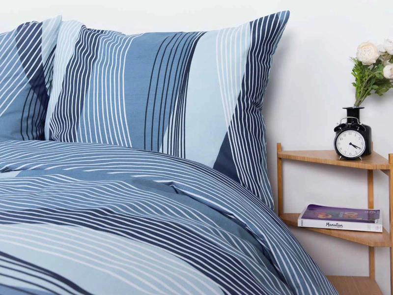 Lahůdka pro vyznavače nadčasových designů a modrých odstínů. Toto povlečení rozzáří moderně zařízenou ložnici. Nezanedbatelná není ani praktická stránka bavlny, která je prodyšná a měkká na dotek. Bavlněné povlečení si vás získá díky vysoké snášenlivosti vůči praní a sušení, kdy si po dlouhou dobu zachová původní barvu i tvar. Využijte výhodný set 2+2 na dvě klasická lůžka. Ozdobte svou postel i ve dne a ochraňte lůžkoviny přehozem na manželskou postel.