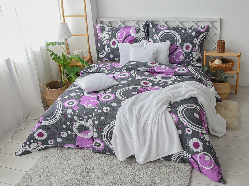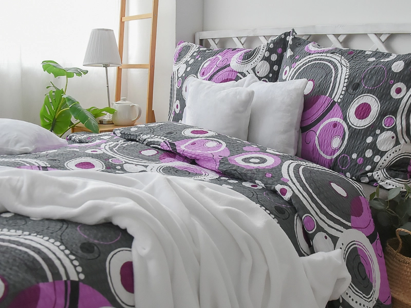 Krepové povlečení a vzor kruhů ve fialových odstínech osvěží každou ložnici. Jak na barvy v ložnici. Kombinace vzoru a barev s přehledem doladí moderní interiér. Krepové povlečení na zip má praktické zapínaní a materiál ze 100% bavlny s krepovou úpravou je příjemný a komfortní. Spolehnout se můžete na vzdušnost, odolnost barev i materiálu vůči opotřebení a úsporu času s nenáročnou údržbou bez žehlení.