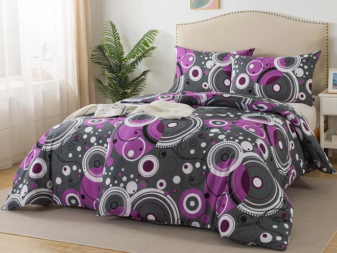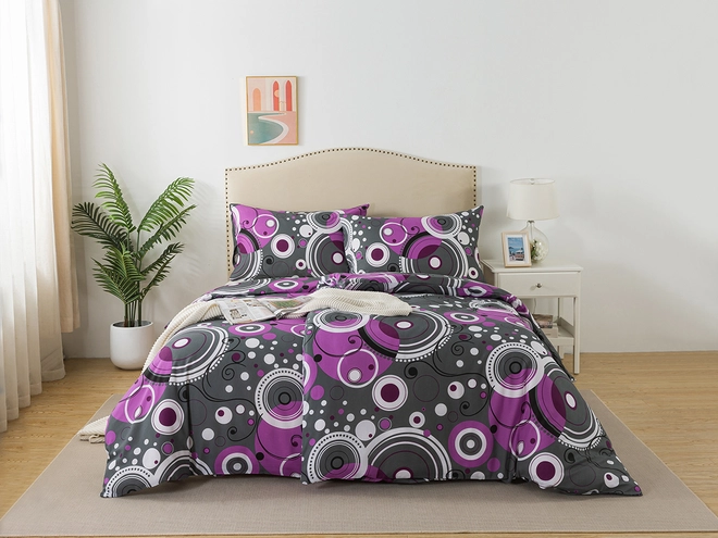 Svěží a nadčasové je toto prodloužené povlečení a design kruhů ŠÁŘKA v kombinaci barev šedé, bílé a fialové což rozjasní každou ložnici. Hladký materiál bavlny má termoregulační vlastnosti a je proto vhodný pro celoroční použití. Prodyšná a savá 100% bavlna bude tou správnou volbou pro kvalitní spánek. Povlečení s praktickým zapínáním na knoflíky můžete ve dne doladit o další barvy a jemný mikroplyš.