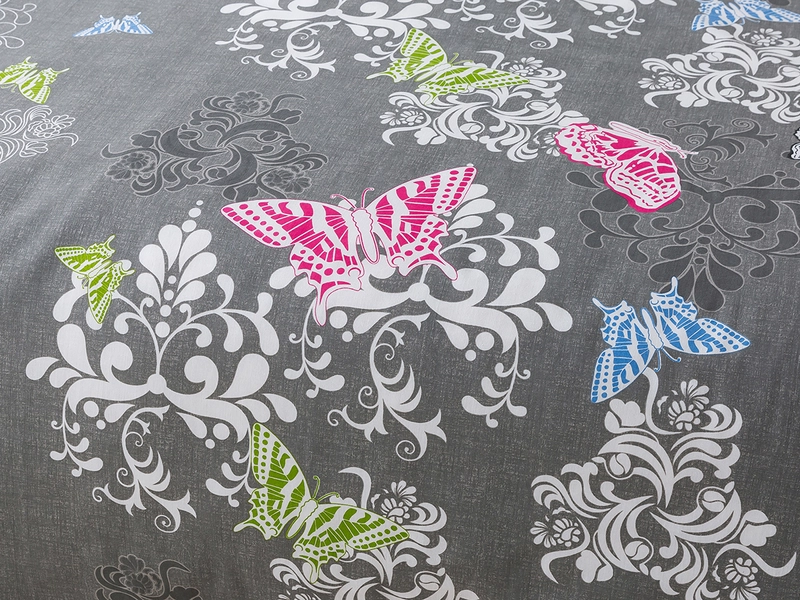 Povlečení DENISA s jemným vzorem motýlků potěší především romantiky. Rafinovaný podklad v šedé barvě nechá krásně vyniknout bílé i barevné vzory a s přehledem zaujmou v ložnici či pokojíku na první pohled. Materiál ze 100% bavlny přináší dobré absorpční vlastnosti, dlouhou životnost a na omak hebký povrch. A ve dne nezapomeňte na přehoz na manželskou postel, který vaše lůžkoviny dokonale ochrání. Využijte výhodný set 2+2 na dvě klasická lůžka.