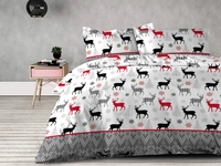Francouzské bavlněné povlečení svou jemností doslova pohladí a severský vzor LYANA osvěží Vaší ložnici. Spodní část nese imitaci pletené vlny, která přechází do bílého podkladu s příhodným motivem jelenů, vloček a stromků. Stylově sladěné barvy šedé, červené a černé na bílém podkladu přispějí k pohodové atmosféře interiéru během zimních dnů i období svátků. Každý povlak na polštář je unikátní a nese na sobě jinou část vzoru. Příjemná 100% bavlna Renforcé zaručí hebkost a vzdušnost materiálu.