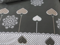 Prodloužené bavlněné povlečení SAM potěší především romantickým motivem. Vzory vloček, srdíček a obloučků jsou vkusně rozmístěny po celé ploše přikrývky a polštáře. Tato ložní souprava nabízí tmavě šedý podklad v kontrastu s bílými vzory odděluje propracovaný pruh připomínající krajku, od světle šedé části poseté malými vločkami. Každý povlak na polštář je unikátní a nese na sebe jinou část vzoru. Bavlna Renforcé nabízí jemnost, savost a vzdušnost pro váš sladký spánek.