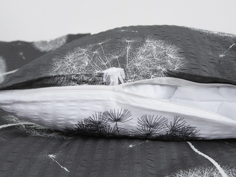Odkvetlé pampelišky a poletující chmýří doladí vaší ložnici k dokonalosti. Krepové povlečení je zhotoveno v DUO provedení barev jako oboustranné povlečení a můžete jej měnit podle nálady či ročního období. Na léto se hodí bílý podklad s šedým potiskem a v zimních měsících tmavě šedý základ s bílým vzorem. Díky savému a prodyšnému materiálu ze 100% bavlny se strukturou krepu splňuje všechny předpoklady k dobrému spánku. Navíc vám práci usnadní nenáročná údržba bez žehlení.