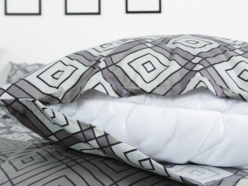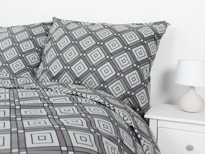 Váš zrak právě upoutalo netradiční bavlněné povlečení ALASKA s motivem vkusně uspořádaných geometrických vzorů, které vynikají na podkladu šedé barvy. Neutrální barevná kombinace vám dá prostor pro výběr barevného prostěradla podle nálady. Kvalitní turecká 100% bavlna navíc nabídne dobrou absorpci vlhkosti, prodyšnost a jemnost na dotek. Francouzský rozměr přikrývky v celku na dvě postele je vhodný jak pro páry, tak i pro jednotlivce, kteří se rádi zachumlají pod velkou peřinou.
