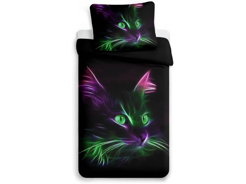 Neonový barevný vzhled a oblíbený potisk kočky je hlavním tématem tohoto heboučkého 3D povlečení. Povlečení s potiskem je příjemným doplňkem do ložnice i dětského pokojíčku a pyšní se precizním ušitím i hebkým materiálem. Mikrovlákno disponuje hned několika kladnými vlastnostmi, díky kterým jej stojí za to vyzkoušet. Jemný materiál 3D povlečení je mimořádně odolný, dobře drží barvy, rychle schne a nemusí se žehlit.