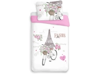 Romantický motiv nabízí povlečení PARIS LOVE. Něžné barvy růžové a přírodně bílé s tématikou zamilovaného Paříže hravě dodají šmrnc dívčímu pokoji. Sladké sny zajistí i na dotek jemný, vzdušný no přesto odolný a stálobarevný materiál s praktickým zapínáním na zip.