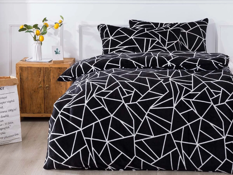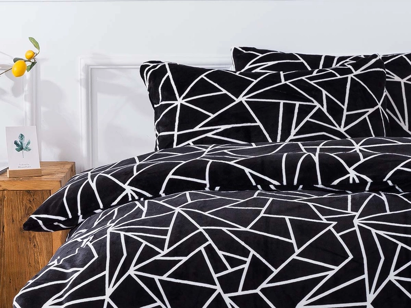 Mikroplyšové povlečení a moderní vzor MATYLDA je ideálním ložním prádlem nejen na zimu. Vybíráte si povlečení podle barev? Černobílé povlečení v kombinaci s geometrickým vzorem nabízí nevšední design i neutrální barvy. Tmavý sametový vzhled vynikne zejména ve světlé ložnici a s přehledem se stane dominantou místnosti. V hřejivém objetí kompletní nabídky z mikroplyše si chvíle odpočinku doslova užijete. Základem je jemné mikrovlákno s krátkými chloupky, které má výjimečnou schopnost vytvářet v posteli útulno a teplo. Nezanedbatelné jsou i vlastnosti povlečení, jako stálobarevnost, odolnost a krásně nadýchaný vzhled i při častém praní.