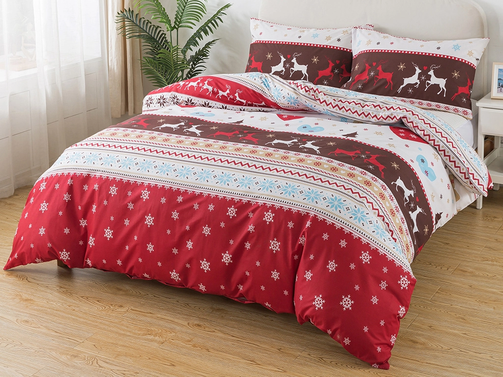 Flanelové povlečení a zimní motivy krásně zahřeje a rozzáří ložnici sváteční atmosférou. Kombinaci barev červené, bílé a hnědé můžete zvýraznit doplněním polštářků i mikroplyšové deky v oblíbené barvě. Každý povlak na polštář je unikátní a nese na sobě jinou část vzoru. Klasický rozměr povlečení na jednu postel snadno povléknete na peřinu 140x200 a polštář 70x90 cm. Na dotek jemný a hřejivý materiál 100% bavlny česaný do flanelu je dobře prodyšný, savý a snadno se udržuje.