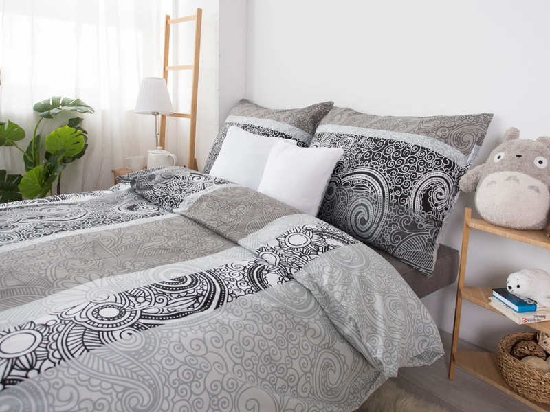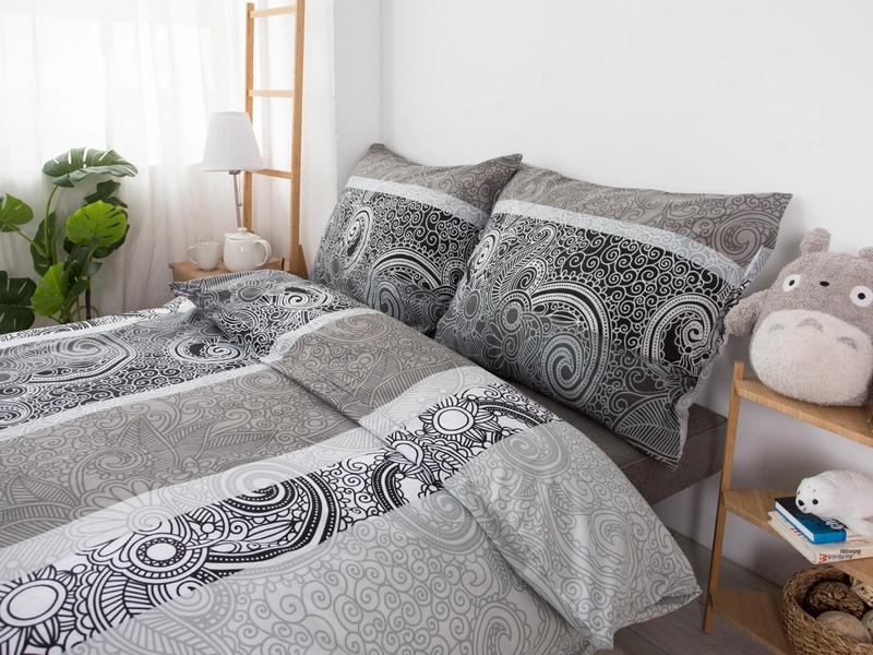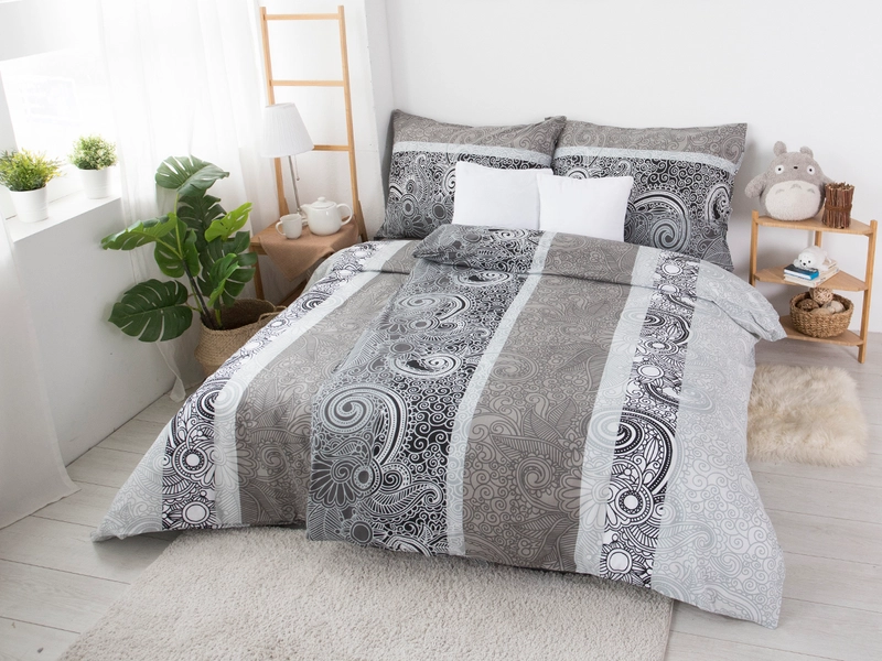 Krepové povlečení a výrazný ornamentální vzor potěší milovníky neutrálních barev. Šedá, černá a kávové odstíny na světlém podkladu se stanou nepřehlédnutelnou ložní soupravou v každé ložnici. Jak na barvy v ložnici. Krepové povlečení na zip je vyrobeno ze 100% bavlny s krepovanou úpravou se zde můžete spolehnout na vzdušnost, odolnost vůči opotřebení a nenáročnou údržbu bez žehlení.