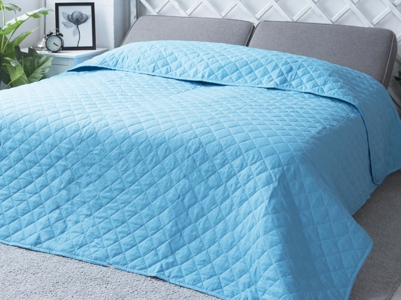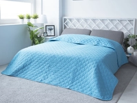 Modrý přehoz pro moderní ložnici a ochranu lůžkovin