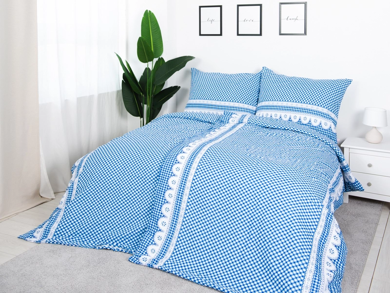 Máte rustikální ložnici nebo hledáte šik ložní prádlo na chatu? Povlečení a vzor kanafas v barvě modré a bílé je pro takové interiéry jako stvořené. Měkký, prodyšný materiál ze 100% bavlny se strukturou krepu si vás získá díky vysoké snášenlivosti vůči praní a sušení. Oblíbíte si i nenáročnou údržbu bez žehlení.
