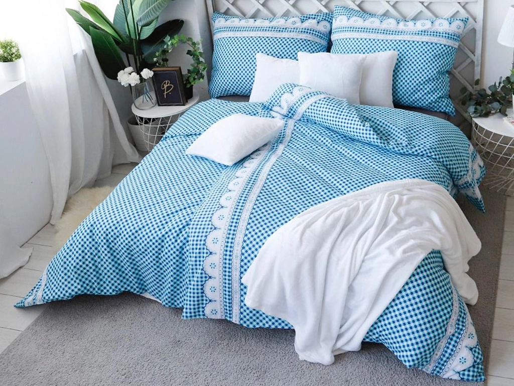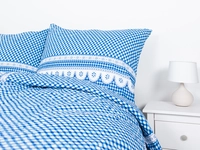 Máte rustikální ložnici nebo hledáte šik ložní prádlo na chatu? Povlečení a vzor kanafas v barvě modré a bílé je pro takové interiéry jako stvořené. Měkký, prodyšný materiál ze 100% bavlny se strukturou krepu si vás získá díky vysoké snášenlivosti vůči praní a sušení. Oblíbíte si i nenáročnou údržbu bez žehlení.