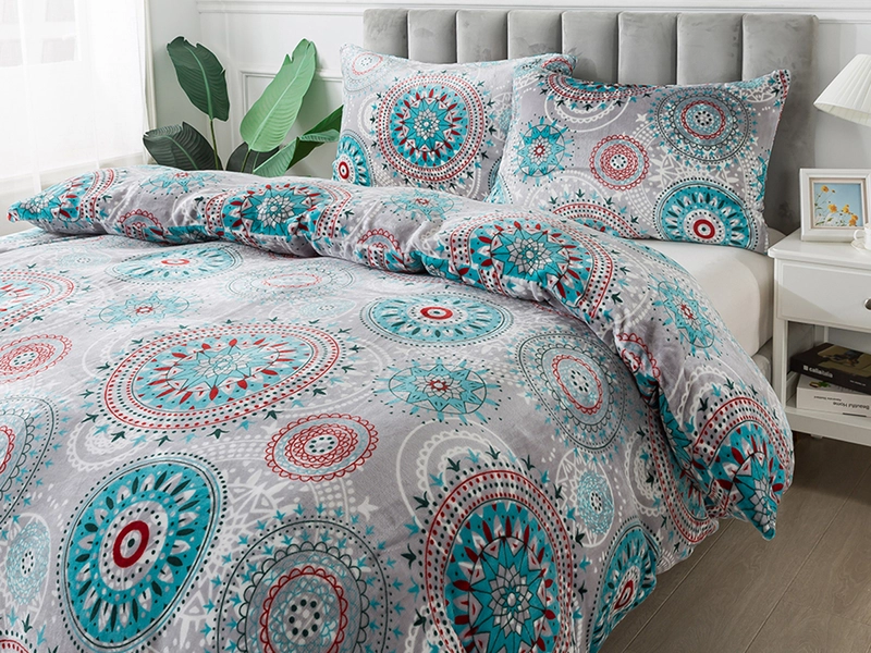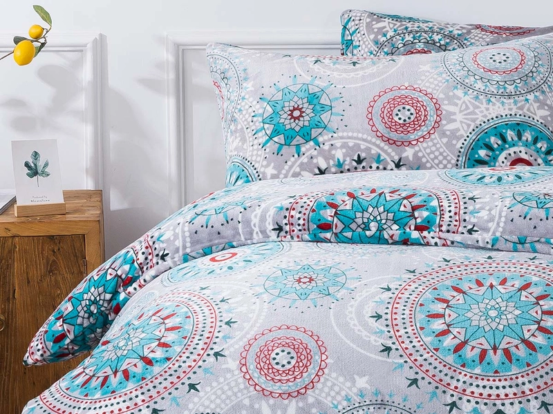 Váš sen se stane skutečností s mikroplyšovým povlečením ideálním pro chladné zimní dny. Efektní barvy šedé v podkladu a tyrkysu, bílé a červené ve vzoru kruhů mandál KIM vdechnou příjemnou energii nejen ložnici. Mikroplyš je tvořen z jemných přízí vlákna s krátkými chloupky, které navodí útulno a teplo až ke konečkům prstů u nohou, co vás uvolní a ukolébá k hlubokému spánku. Zamilujete si i vlastnosti materiálu, jež rychle schne, nežmolkuje, nepotřebuje žehlení, protože se nekrčí a zůstává nadýchaný. Barvy jsou stálé, a i při častém praní zůstanou jako nové.
