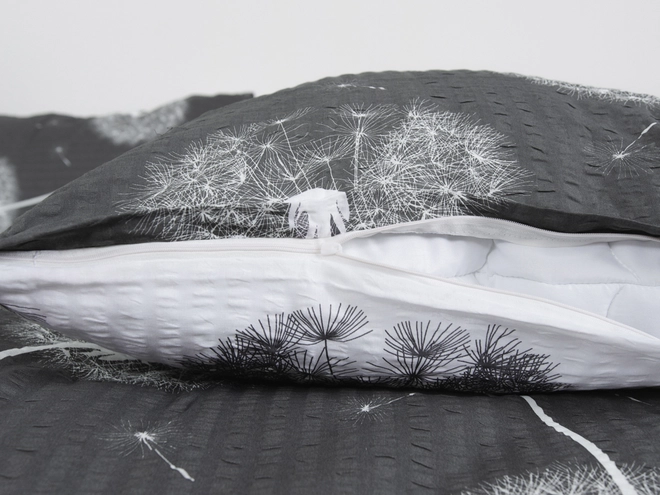 Decentní motiv odkvetlých pampelišek a poletujícího chmýří doladí vaší ložnici k dokonalosti. Flanelový povlak PAMPELIŠKY je zhotoven v DUO barevném provedení a můžete jej měnit podle nálady či ročního období. Na léto se hodí bílý podklad s šedým potiskem a v zimních měsících tmavě šedý základ s bílým vzorem. Díky hebkému a prodyšnému materiálu ze 100% česané bavlny splňuje všechny předpoklady k dobrému spánku.