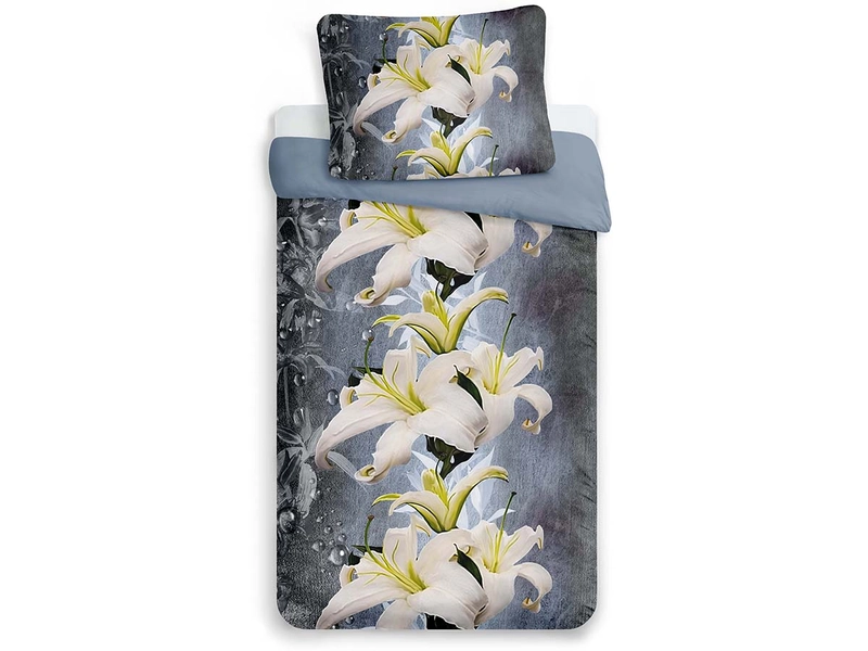 3D povlečení s motivem něžné LILIE na šedomodrém podkladu zaujme nejednu romantickou duši. Mikrosatén se pyšní několika kladnými vlastnostmi, díky kterým jej stojí za to vyzkoušet. Jeho vlákna jsou extrémně jemná, příjemná na omak a rychle schnou. Nepatrně lesklý povrch doplňují dobré absorpční vlastnosti a barvy, které dobře odolávají praní.