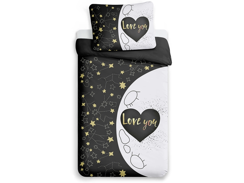 Povlečte svou postel do nádherných vzorů! Toto 3D povlečení LOVE YOU řekne za vás "miluji tě" a jako moderní povlečení s přehledem doladí váš interiér pokoje či ložnice. Kombinace černé a bílé zdobené detailem v odstínech zlaté bez lesku krásně vynikne ve světle i tmavě zařízené místnosti. Jemné mikrovlákno je zpracované do příjemného materiálu, který je mimořádně odolný, dobře drží barvy, rychle schne a nemusí se žehlit.