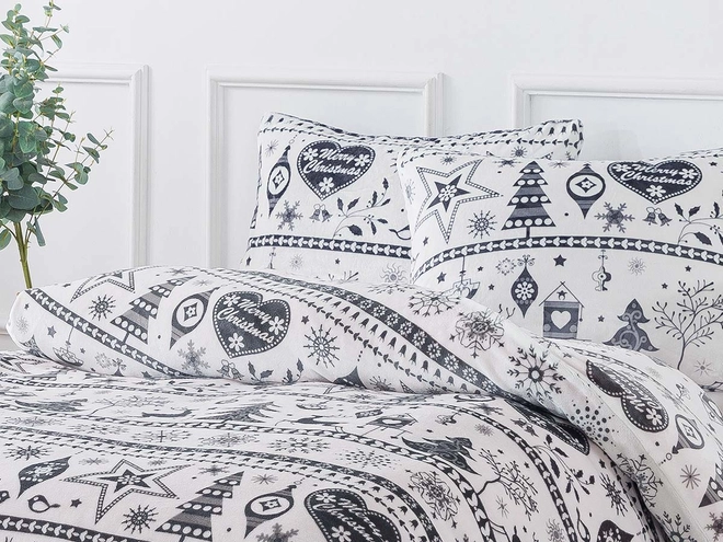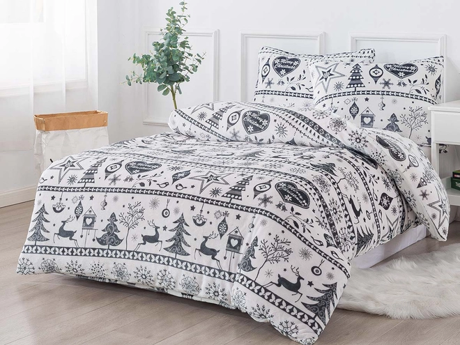 Mikroplyšové povlečení je nepostradatelným pomocníkem do ložnice pro všechny zmrzlíky, a navíc v heboučkém objetí se budete cítit jako v náruči plyšového medvídka. Francouzské povlečení 200x220 zdobí zimní motivy v tmavě šedém odstínu, které krásně vyniknou na bílém pozadí. To dodá místnosti vzdušnost i pocit čistoty a do ložnice jako vánoční povlečení vnese příjemnou sváteční atmosféru. Co víc nabízí mikroplyš? Je to hřejivý materiál tvořený jemným vláknem s krátkými chloupky, které mají výjimečnou schopnost vytvářet v posteli útulno a teplo. Je neuvěřitelné měkký a hebký, rychle schne, nežmolkuje, nemusí se žehlit ani se nemačká. Nejen zimní povlečení, ale i kompletní nabídka mikroplyše zaujme svými sytými a jasnými barvami, které si zachovává i po mnoha vypráních.
