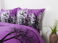 Abstraktní pojetí přírody nabízí bavlněné povlečení YAKAMOZ. Vyobrazené štíhlé stromky v popředí doplňují husté větve na lila podkladu. Atraktivní vzor spolu s odolným a zároveň jemným materiálem ze 100% bavlny doladí každou ložnici a stane se nepřehlédnutelným kouskem vašeho domova.