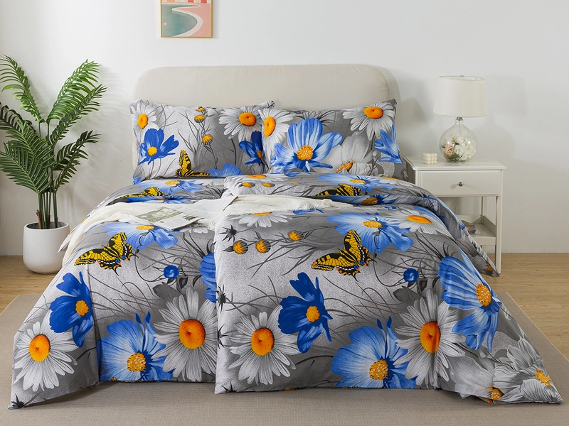 Se svěžím letním motivem lučních květin se chlubí francouzské bavlněné povlečení KARLA. Probudí vaši ložnici ze zimního spánku a v tandemu odstínů sytě modré a žluté barvy na šedém podkladu vyzařuje pozitivní energii, která vám zvedne náladu. Jemná 100% bavlnya nabízí savý, vzdušný a poddajný materiál, a tak hravě přispívá ke kvalitě spánku. Francouzský rozměr přikrývky v celku na dvě postele je vhodný pro páry, no i pro jednotlivce, kteří se rádi pořádně zachumlají. Ozdobte svou postel i ve dne a ochraňte lůžkoviny přehozem na manželskou postel.