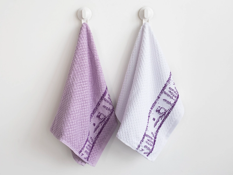 Vysoce savé kuchyňské utěrky, nebo ručníky jsou v domácnosti nepostradatelným pomocníkem. Měkká nadýchaná bavlna pohladí vaše ruce a zpříjemní tak úklid kuchyně, nezanechává vlákna a díky univerzálnímu dezénu poslouží i jako ručník ve vaši koupelně. Kuchyňské utěrky zdobí líbivý dekor fialové výšivky LAVENDER ve spodní části, jenž efektně doplňuje buď lila, nebo bílé přerušované froté tvořící drobný vzor šachovnice z obou stran.