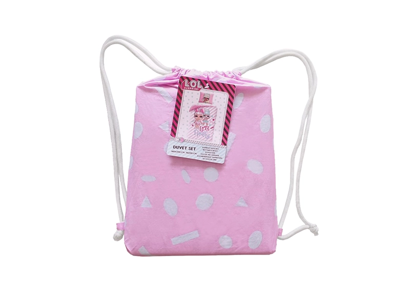 Dětské povlečení je zabaleno v batůžku / vaku, který dětem poslouží na výlety, anebo na hračky. Stačí zatáhnout šňůrky a poklady jsou v bezpečí.